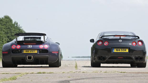 En matière d'automobiles, les Anglais comparent tout ce qu'il est possible de comparer voire même un peu plus. En gros, il ne leur faut pas grand-chose de commun entre 2 voitures pour organiser un match. Pour justifier de mettre une Nissan GT-R en face d'une Bugatti Veyron, ils ont tout simplement estimé que ces 2 voitures délivraient des performances incroyables, voire inimaginables et qu'elles écrasaient à peu près tout sur leur passage à tel point que la Nissan a été qualifiée par certains de « baby Veyron ». Bref, c'était suffisant pour les mettre face à face et voir à quelle sauce la Veyron allait manger la GT-R. Et si elle la mange
